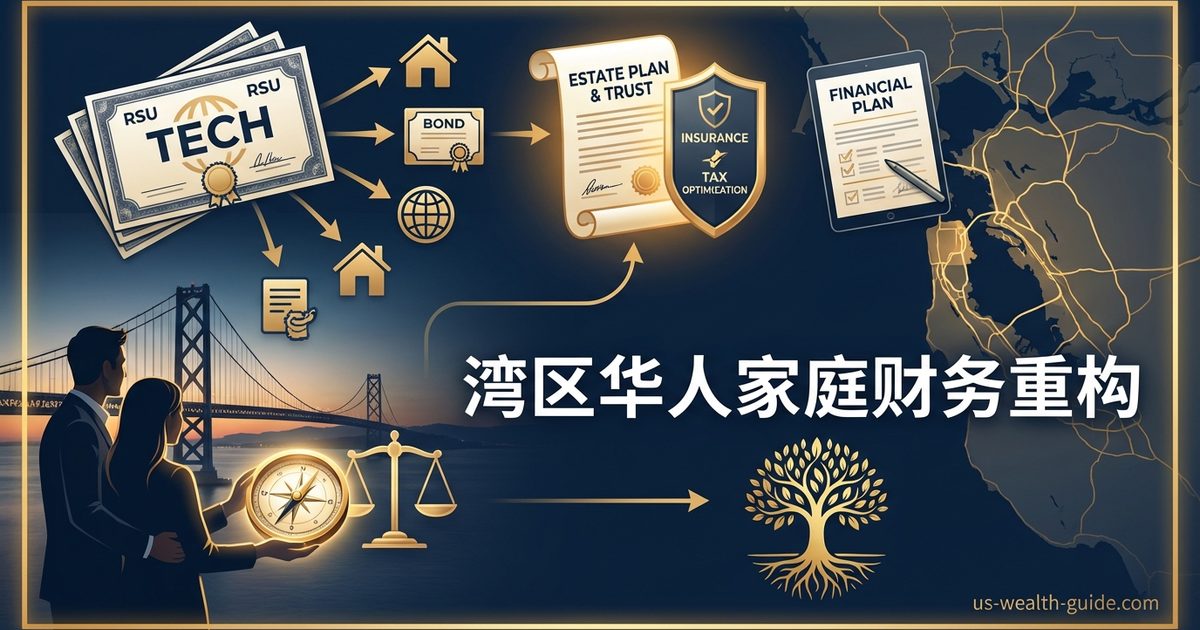 湾区华人家庭财务规划实战指南:科技股风险、税务优化与财富传承 🎯 45岁湾区双职工华人家庭,收入可观净资产超百万美元(近千万人民币),却从未做过全面财务规划:公司RSU多年未卖导致资产高度集中于科技股🏢,持有湾区自住房却无遗嘱或信托,生活支出高企却忽视保险保障和税务优化。本文通过一个真实感案例,详细解析财务顾问介入后如何帮助这对夫妻梳理资产负债表、制定现金流计划,分散投资风险、优化税务策略,配置长期护理保险和建立生前信托等estate plan,全方位提升家庭财务健康💰。干货满满,信息密度高,帮助你掌握高净值家庭财务规划的核心逻辑与实践技巧!
